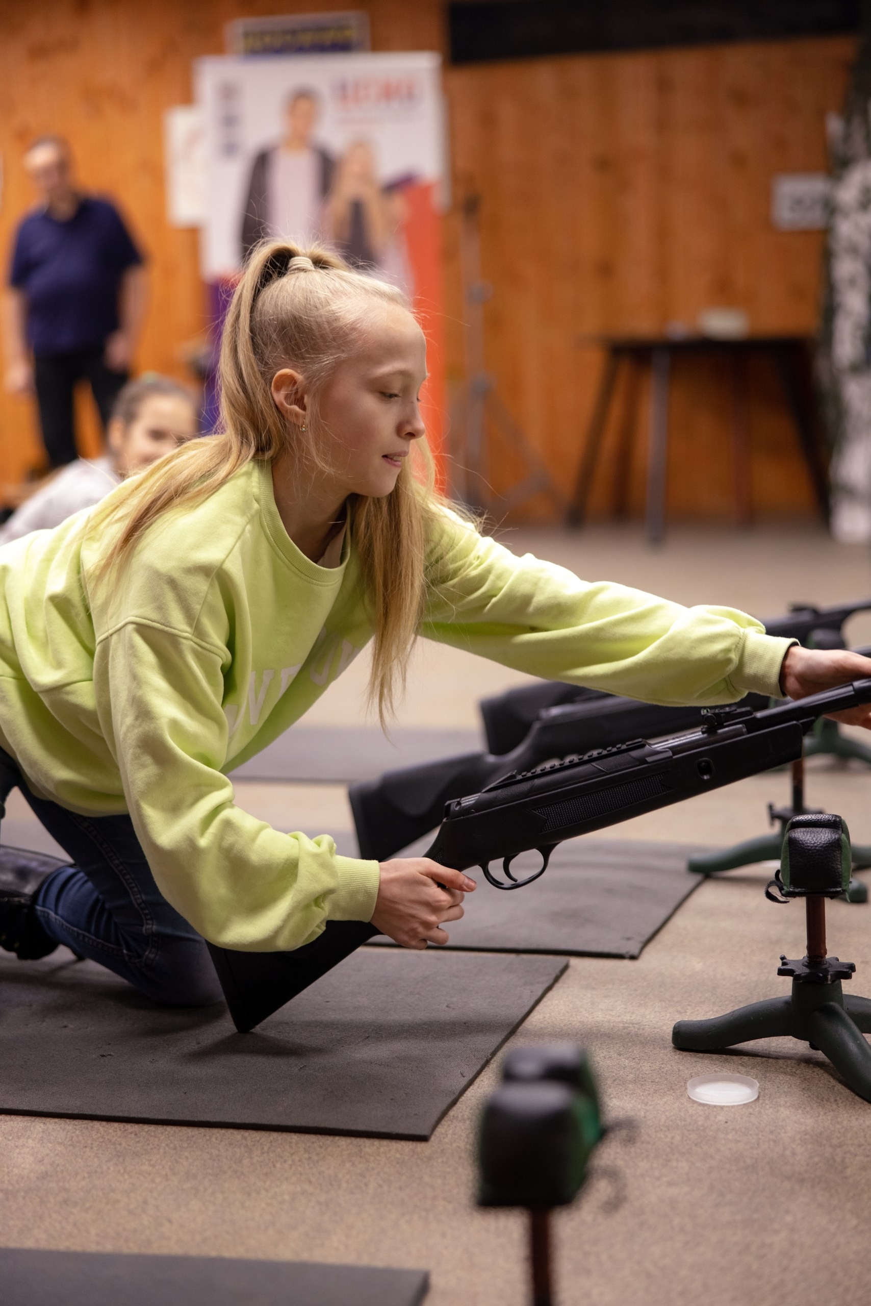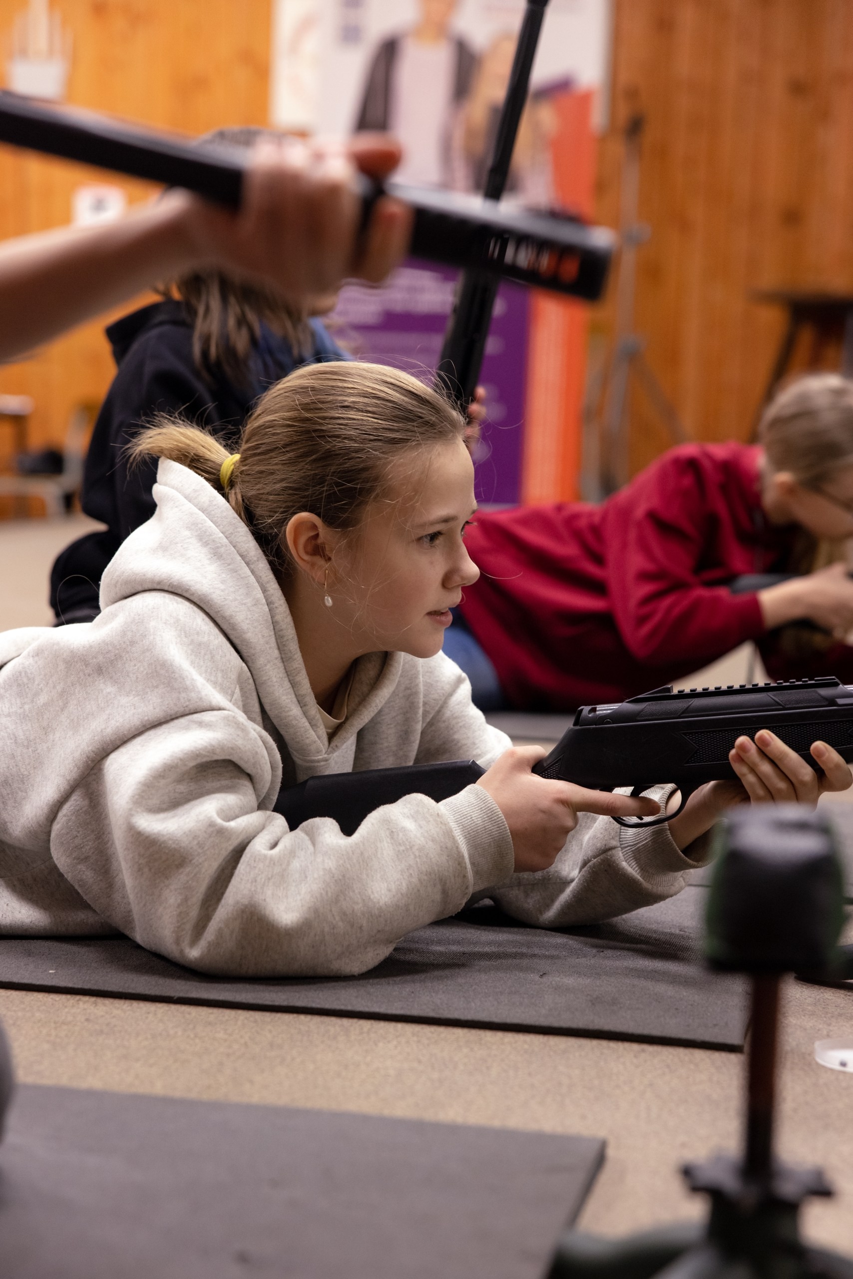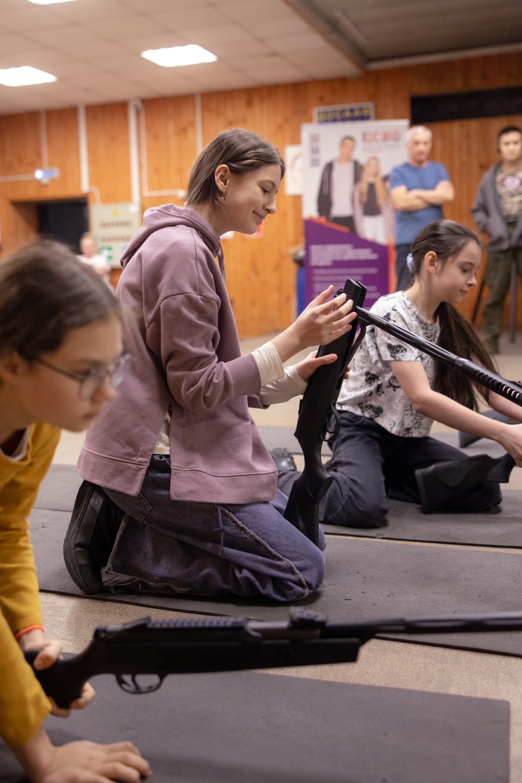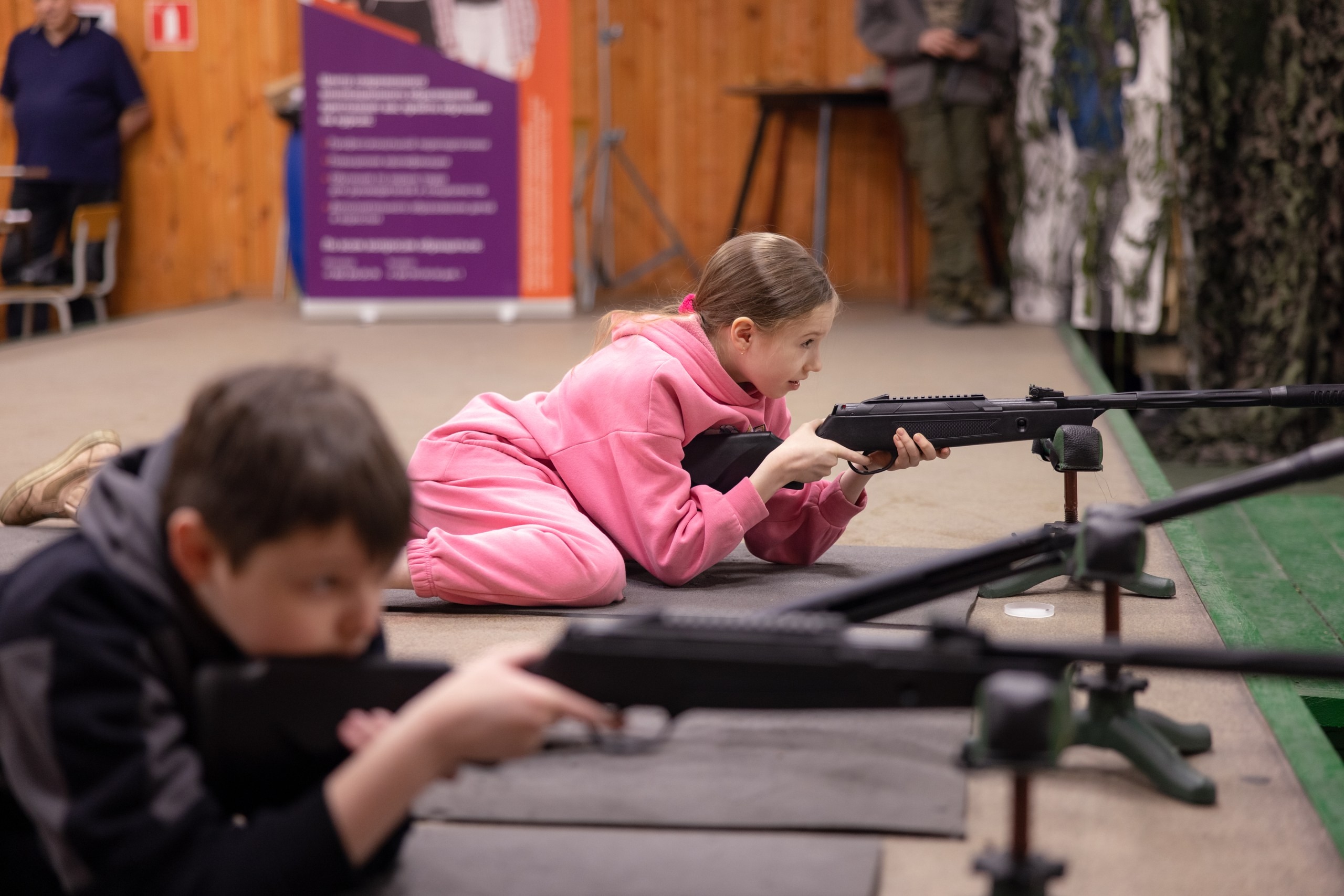 Ребята пробуют себя в стрельбе под руководством инструкторов ДОСААФ, демонстрируя внимательность, сосредоточенность и спортивный азарт.