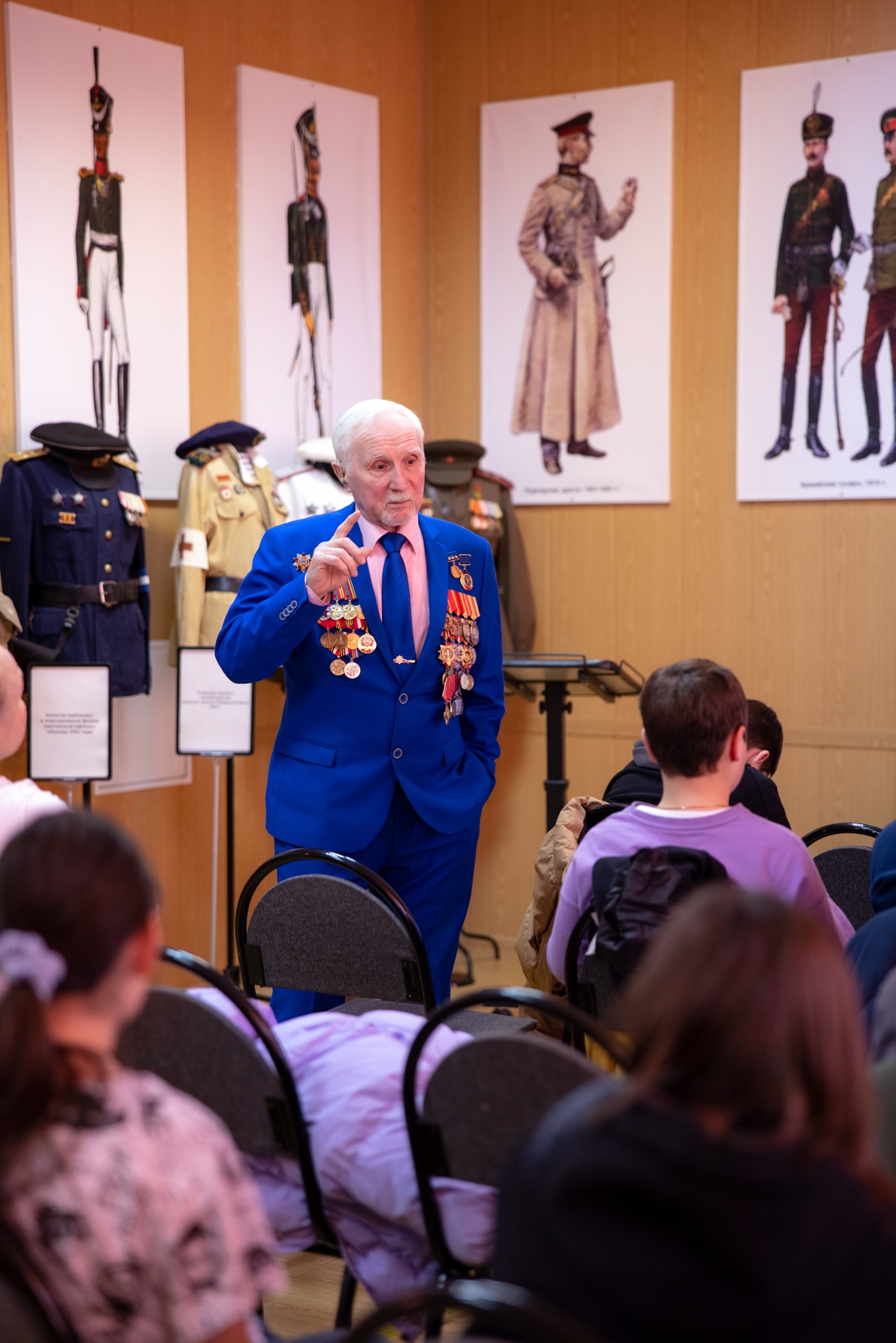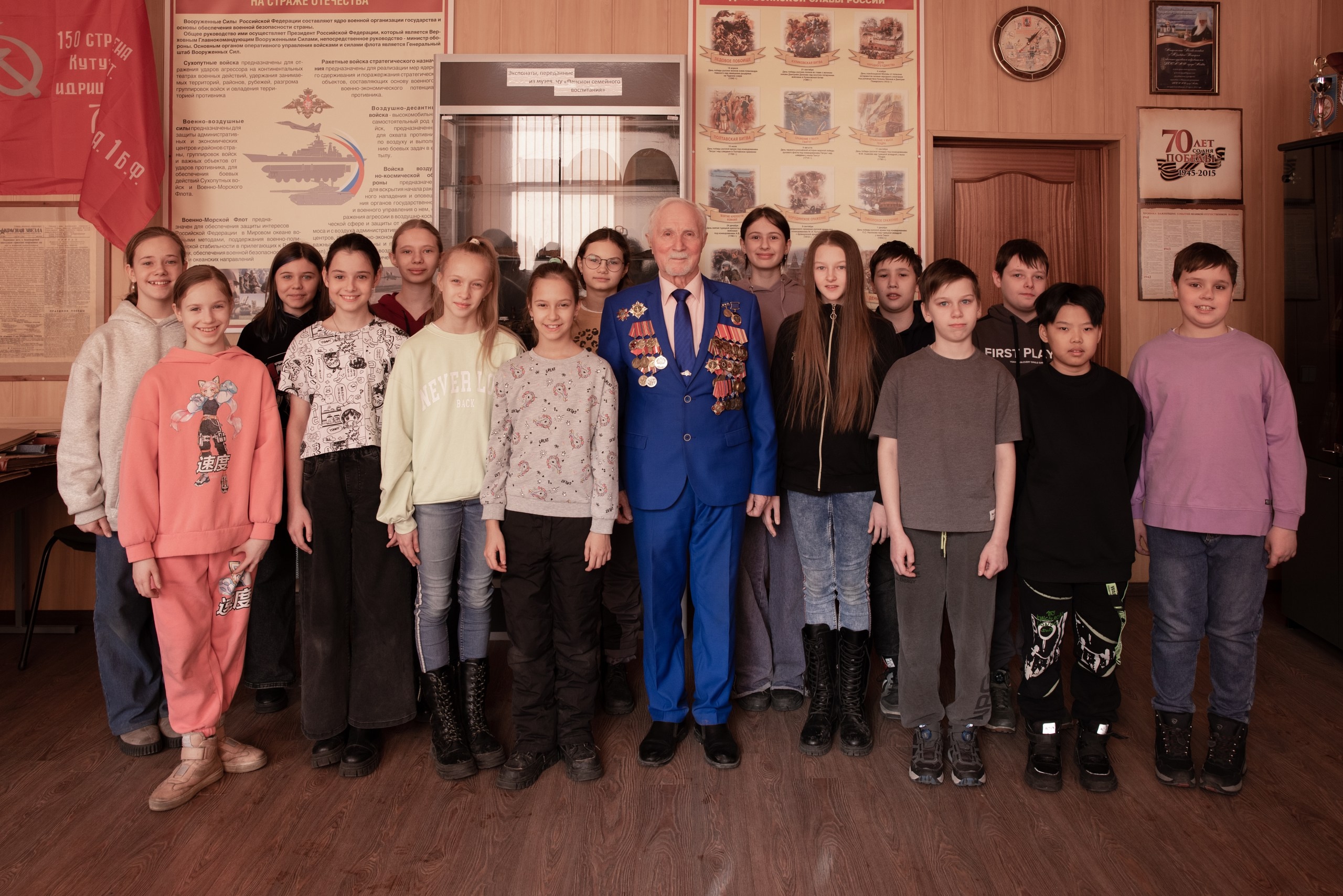Ученики с интересом слушают рассказ ветерана о военной службе, подвигах и настоящем значении слова «Отечество».